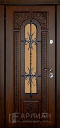 Фото №2 «Металлическая дверь МДФ шпон со стеклом и ковкой №19»