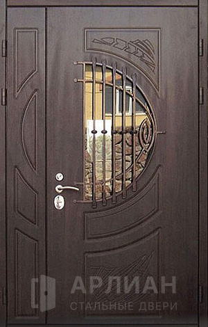 Входная дверь для загородного дома с коваными элементами №115