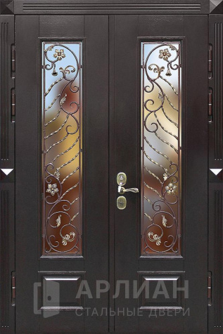 Двустворчатая дверь со стеклом и кованной решеткой №2