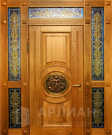 Входная дверь нестандартных размеров с массивом дерева со стеклом №353