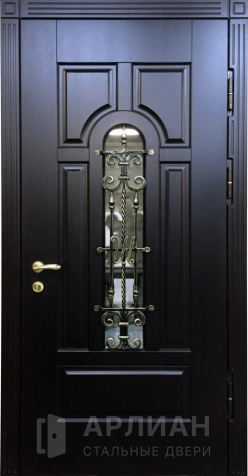 Высокая арочная дверь с фрамугой и кованой решеткой №12